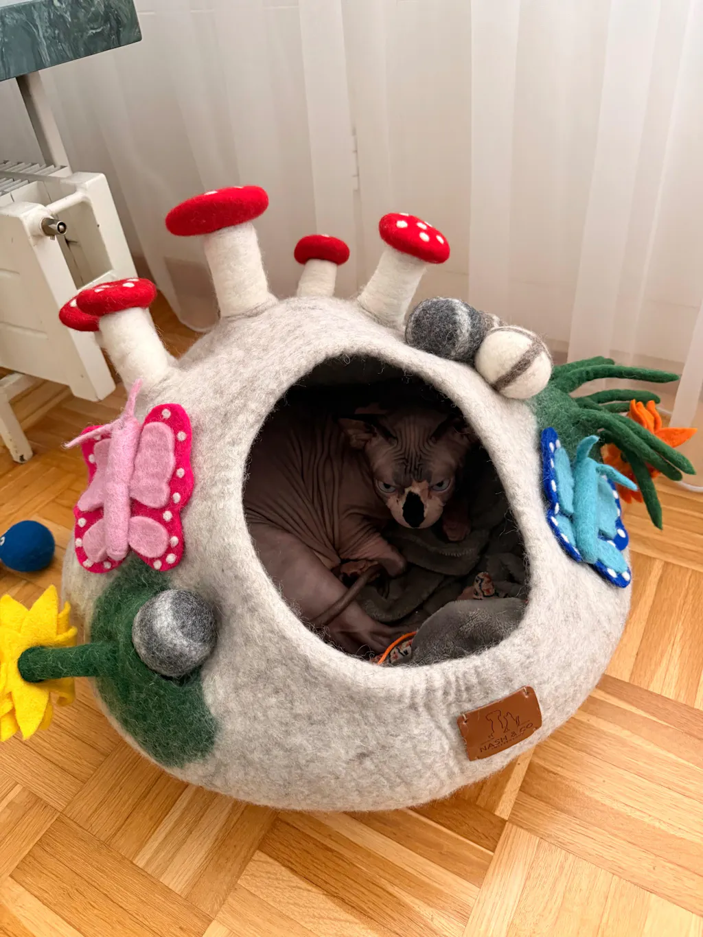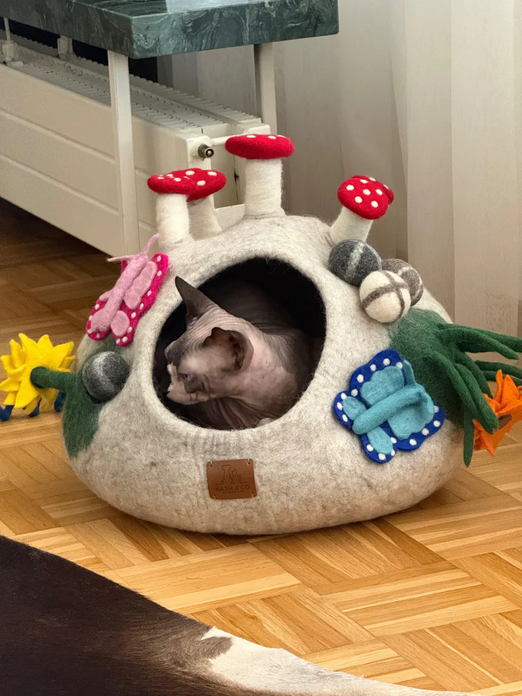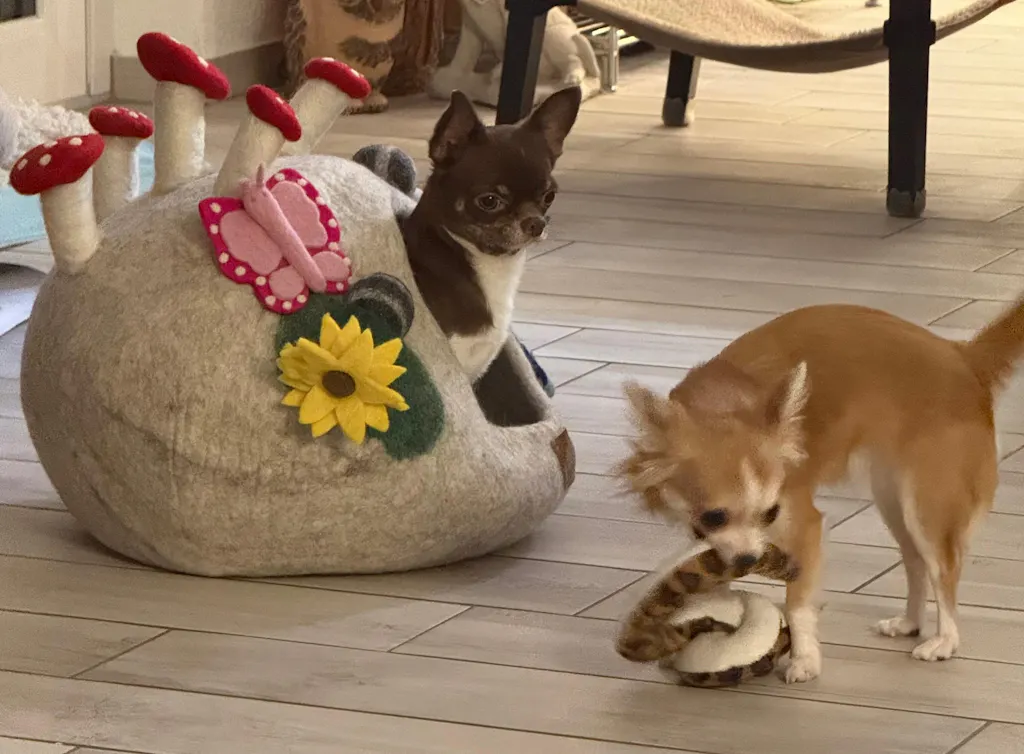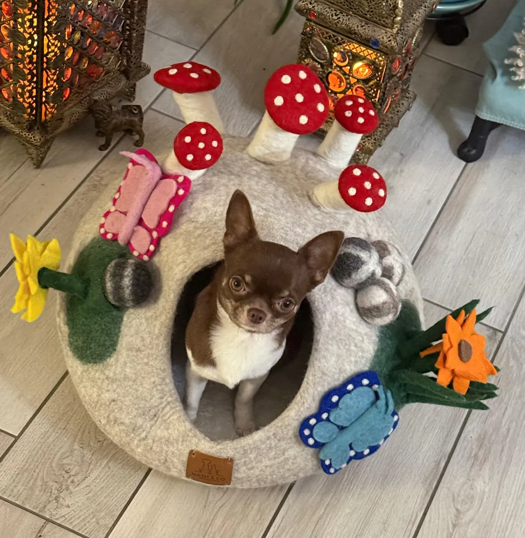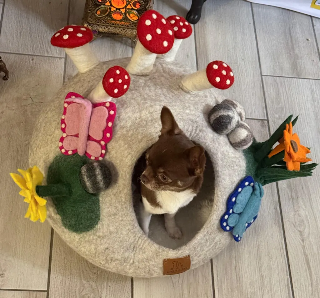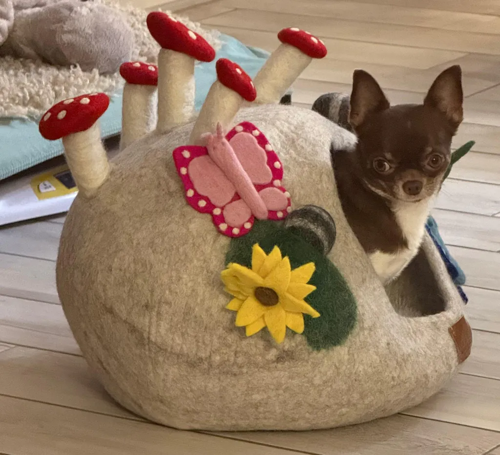 Meine 3 bkh lieben diese Höhle und auch alle anderen Spielzeuge aus Filzschafwolle.